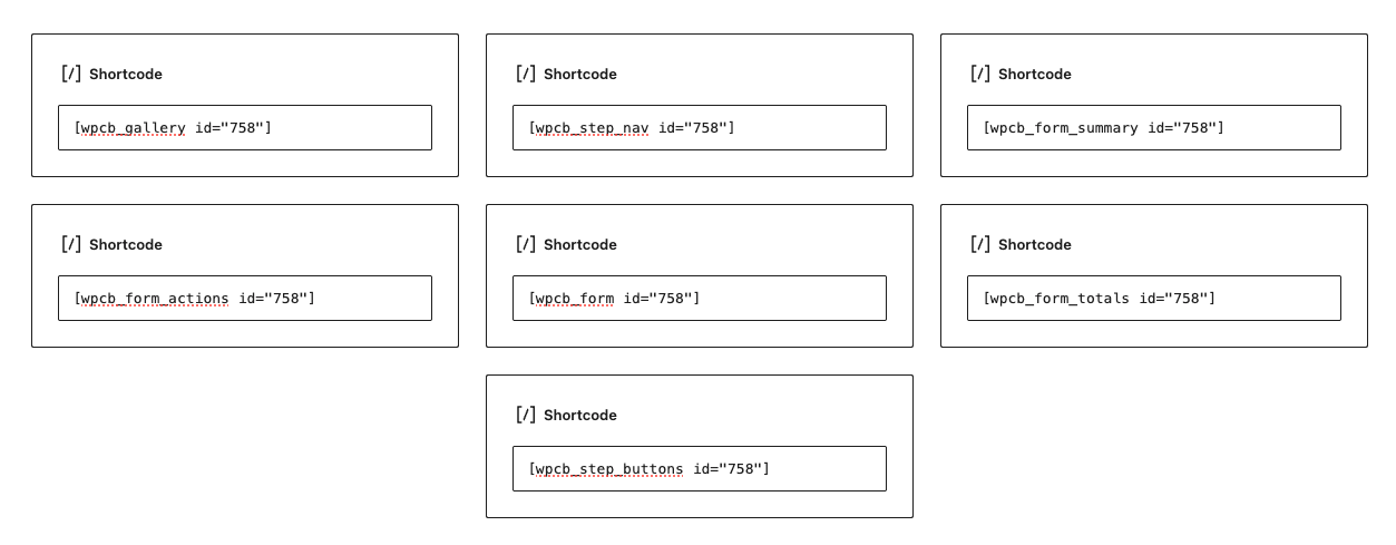 These are the elements you can choose from and their corresponding shortcodes: