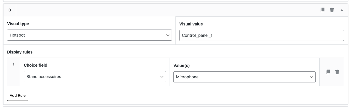 To configure this, add visual rule type “Hotspot” and enter the hotspot ID in the visual value field.