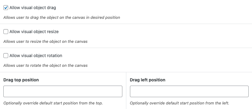 Allow customers to drag around custom texts and images right on the product image canvas so they can put the text and images in their desired location.